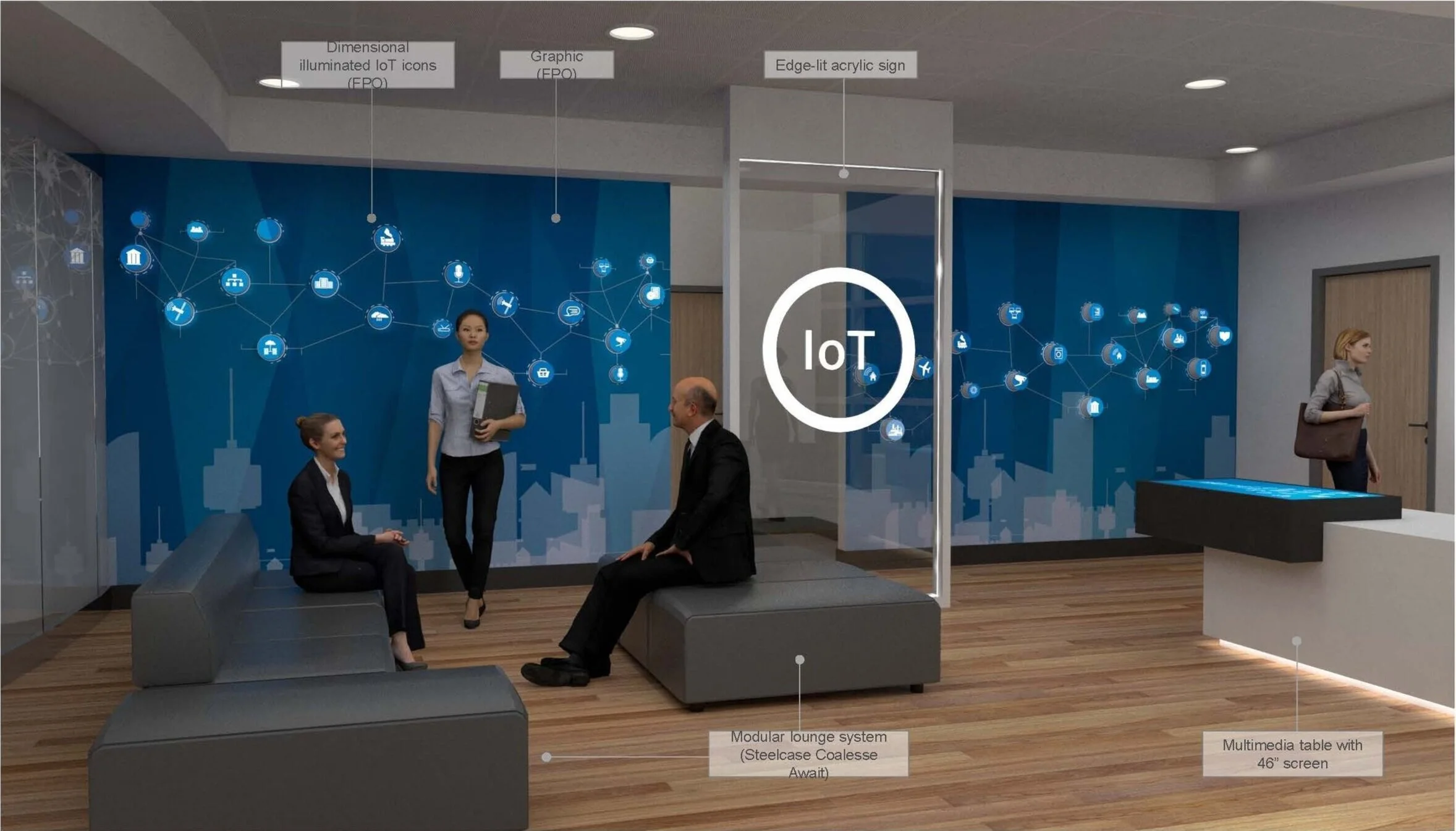 The idea is to designing the space that is modern and airy and showcasing the technology without visually overwhelming the visitors.