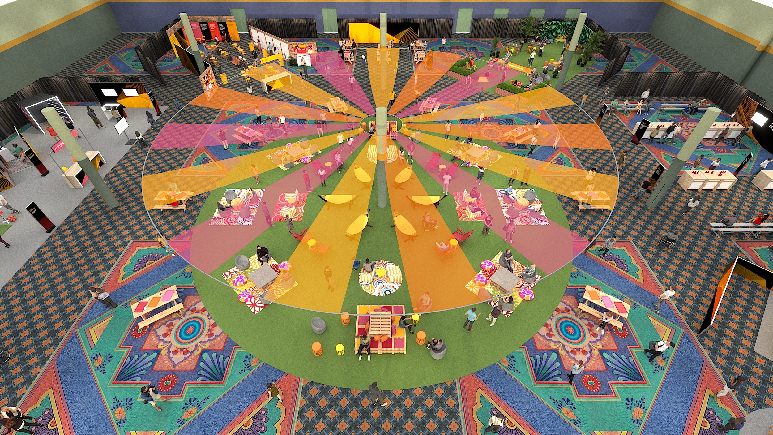 The initial ideation, fueled by AI, aimed to capture a fun, festive, and a festival-like vibe. Embracing a raw, unfinished aesthetic that moved beyond traditional corporate settings, creating an atmosphere that was both engaging and unconventional.